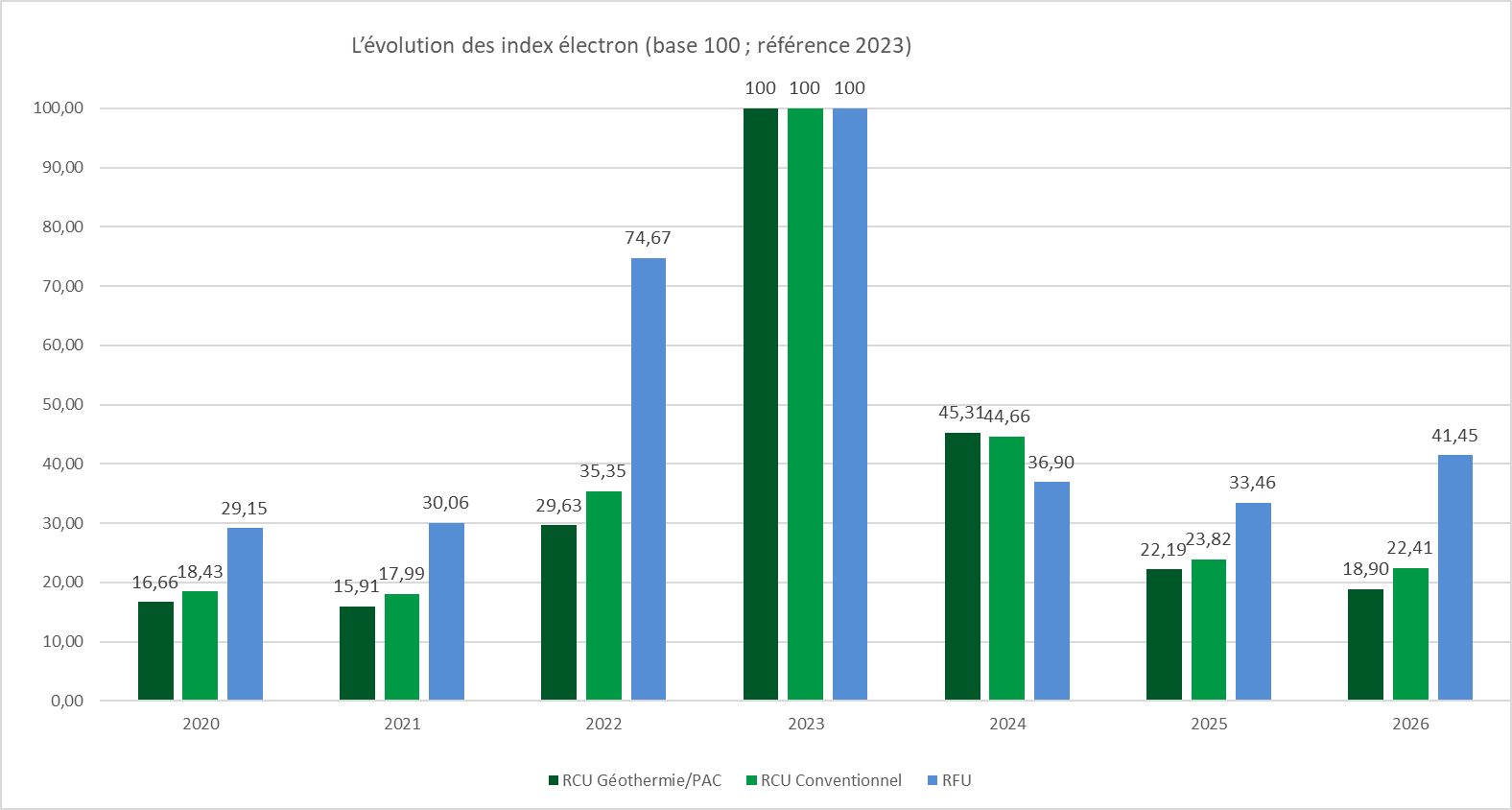 Construit à partir des prix de l’électricité achetée par les opérateurs de réseaux de chaleur et de froid en année n-1, l’indice électron donne une valeur pour l’année n qui respecte l’évolution du marché. Sa mise à jour sera publiée la première quinzaine de janvier de l’année n sur le site internet de la FEDENE.